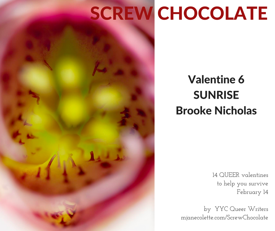 SCREW CHOCOLATE: 14 Queer Valentines To Help You Survive February 14 is a collaborative project by YYC Queer Writers. We get together intermittently to… write. Also, laud our lovers. Commiserate about our exes. Read each other what we wrote. Explain what we want to write. Try to justify why we aren’t writing it. Go home and write it. Come back. Share it… repeat.