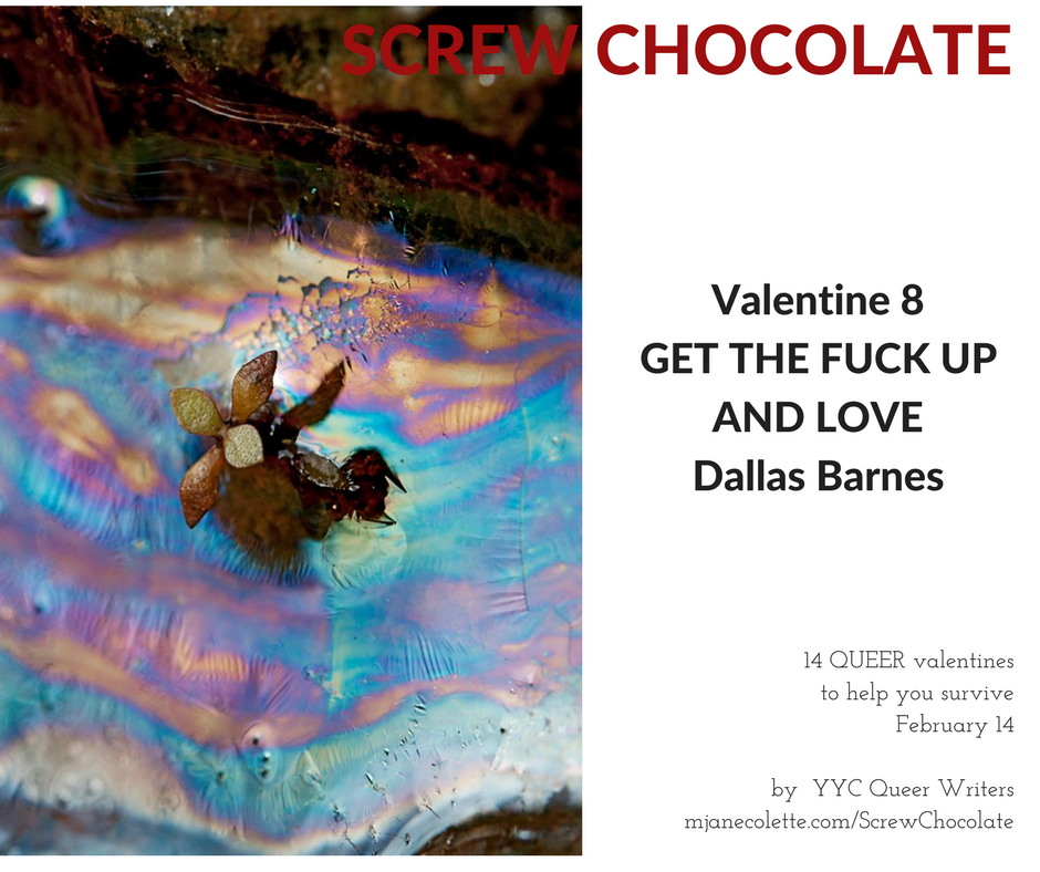 SCREW CHOCOLATE: 14 Queer Valentines To Help You Survive February 14 is a collaborative project by YYC Queer Writers. We get together intermittently to… write. Also, laud our lovers. Commiserate about our exes. Read each other what we wrote. Explain what we want to write. Try to justify why we aren’t writing it. Go home and write it. Come back. Share it… repeat.