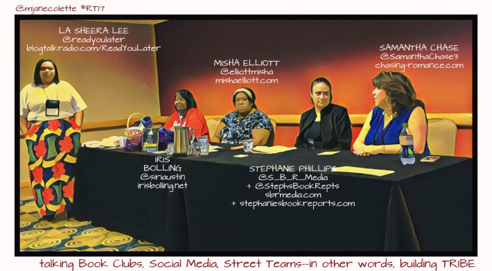 The Book Clubs + More session is absolutely fab, not just for the content—which is pretty useful, of course—but for the chemistry between the four panelists, Iris Bolling, Misha Elliott, Stephanie Phillips, and Samantha Chase, and their moderator, La Sheera Lee: