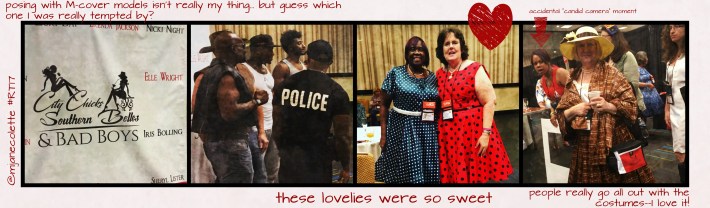 A massive line forms for the next party before this one is over (I’ve told you before, romance writers throw the best parties—and this is true—and romance readers clearly love the parties a lot). The next party is called Petticoats and Pistols, and it’s all a celebration of historical romance. And man-oh-man, them historical authors went all out. I mean…