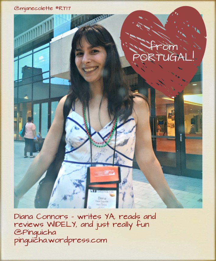 Diana Connors writes YA and is here all the way from Portugal. Also, she’s probably the most beautiful woman at the conference. I’m not Anglo, so I tell her so, and she’s not Anglo, therefore she takes it the way compliments are meant to be received.