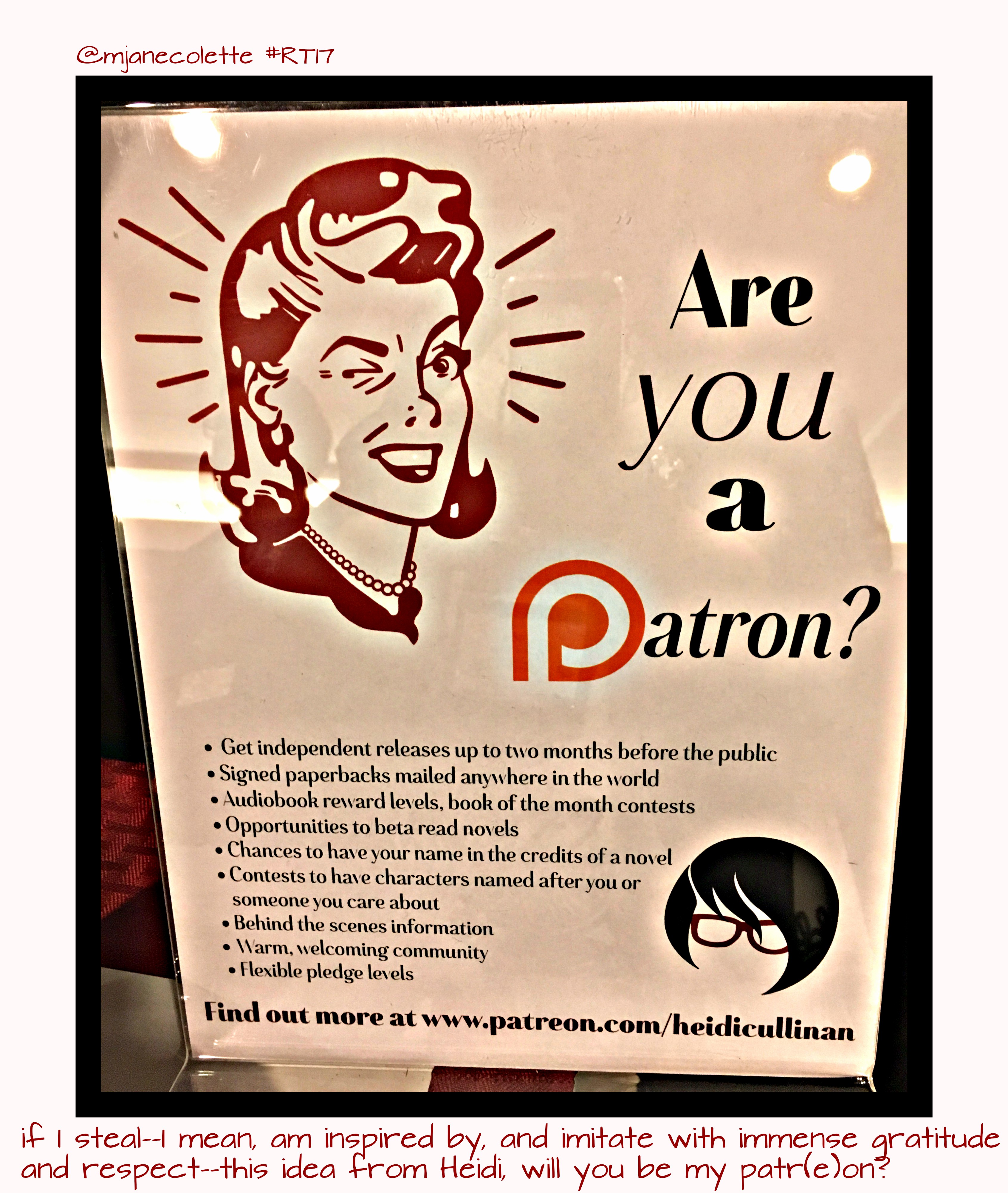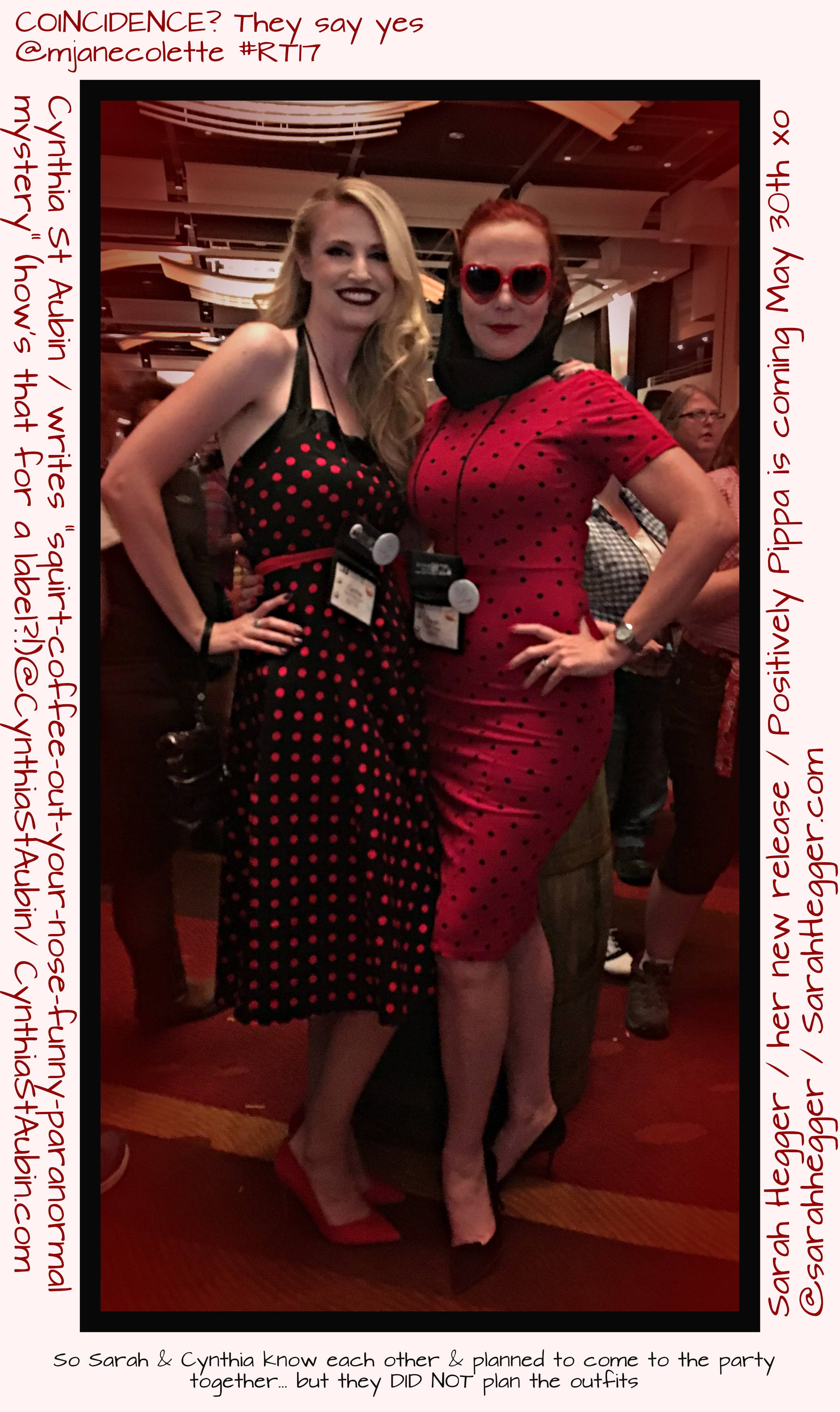 We met in an online course put on by Passionate Ink, the erotic romance chapter of RWA a few months ago, and last week Cameron did this amazing interview with me just in time for the launch of Consequences (Of Defensive Adultery) (you read it, right? No? What? Go here: Author Spotlight on M Jane Colette), but we’ve never ever met in person. And there she was. In the elevator at RT.