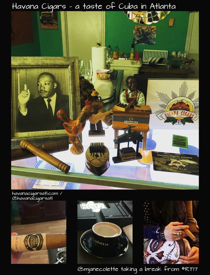 …owned and operated by Rafa and Heather—he’s from Havana, and she’s US-born but of a Cuban-Russian mother (they were clearly meant to be together, and Heather tells me how they met and fell in love, and OMG, it’s such a good story, I’m going to write a book about it in… 2020, unless it demands an earlier spot in the queue)—and their place, Havana Cigars Atlanta, is just the most awesome cozy friendly happy place.