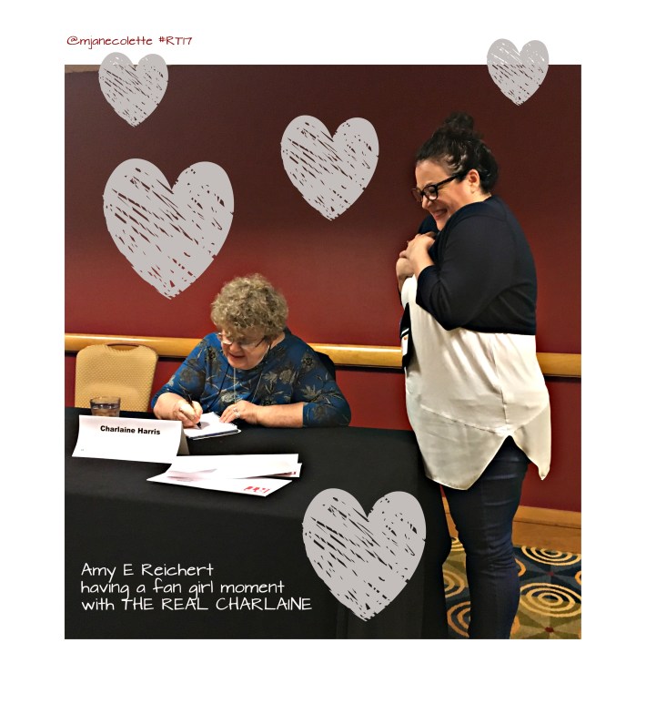 And then Charlaine Harris walks into the room, and OMFG, I’m like 15 and giddy and talking to my favourite rock star.