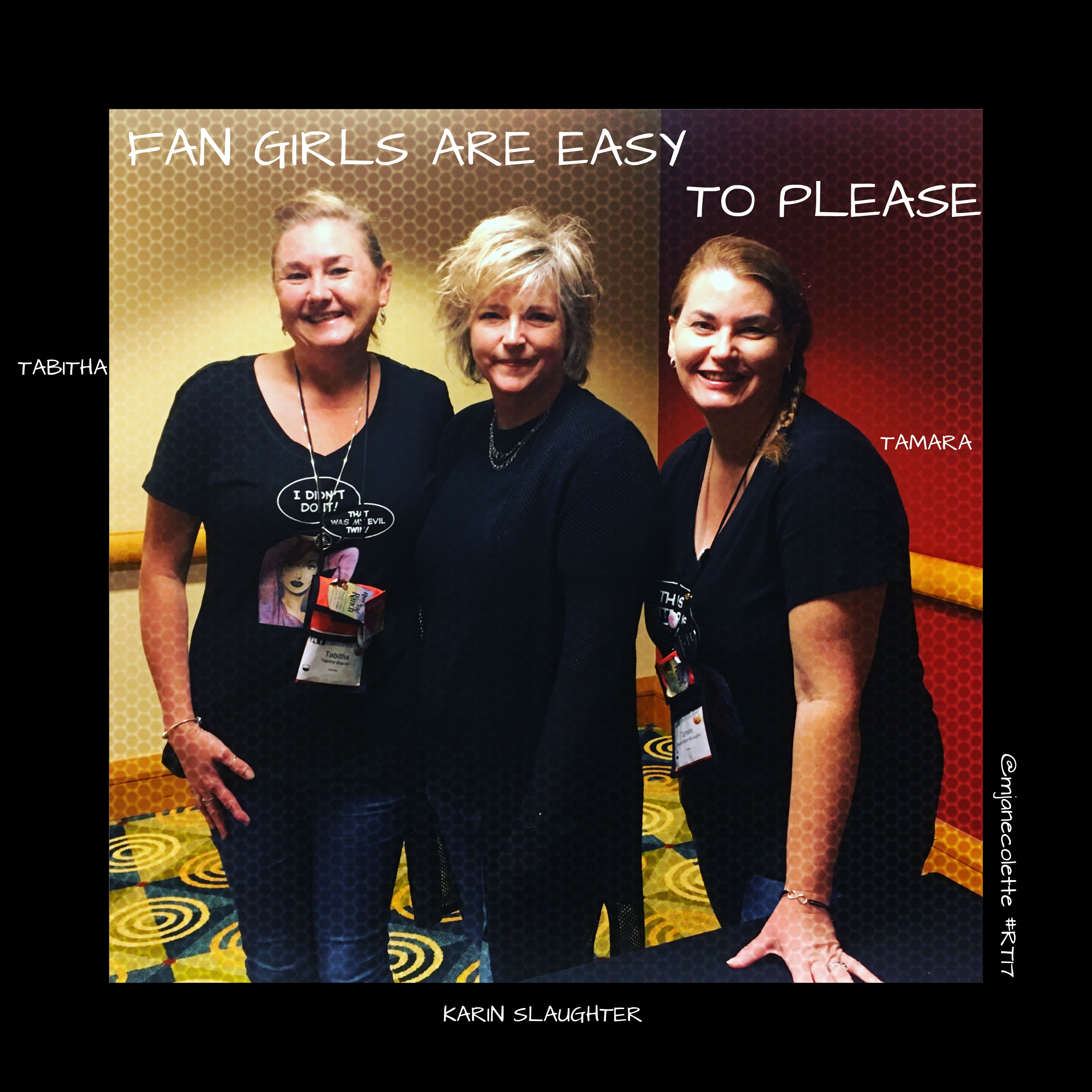 Amy and I are in the “We’re here for Charlaine Harris first, but wow, Karin Slaughter too!” camp and Stacy and the Ts are on the “Karin Slaughter, woo-hoo! But Charlaine Harris is cool too” side.