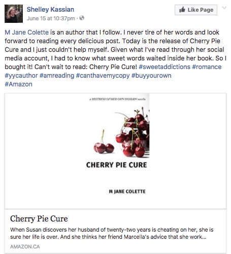 Also, full of gratitude and appreciation for my CaRWA (Calgary Chapter of the Romance Writers Association of America) peeps for their support in the lead-up to the publication of Cherry Pie, especially Jill Flanagan for answering my many stupid questions, Shelley Kassian for the most amazing social media share of launch day—ok, I totally have to show you a picture of it:
