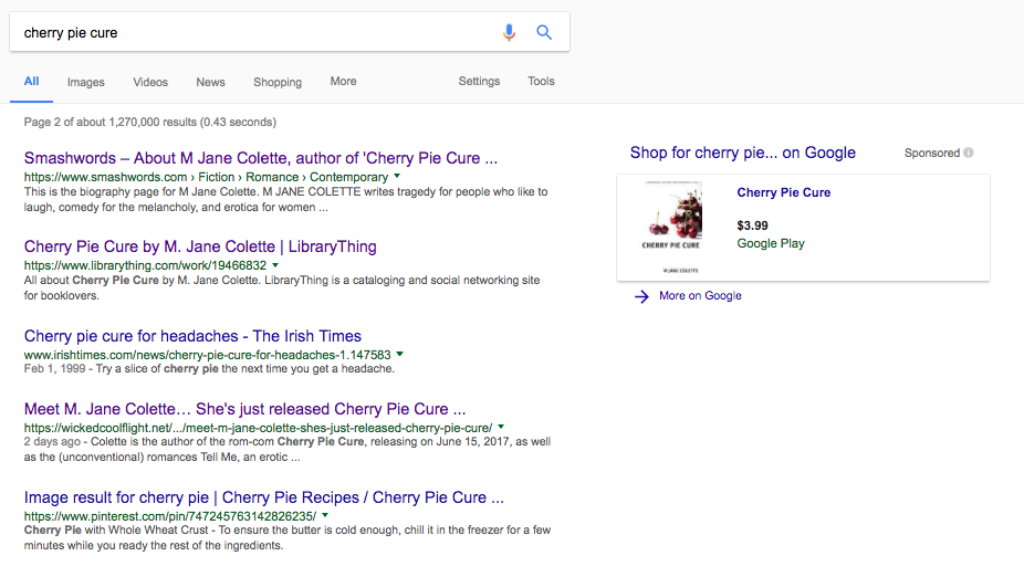 Smooches to the Fly Girls at Wicked Cool Flight for this chance to ponder on whether I really am I romance author* and why I write the types of women I write: Meet M Jane Colette: She’s Just Released Cherry Pie Cure. The Fly Girls, who include author Teresa Crumpton and I did not meet at RT, although we were all there—but we’re connected now. 🙂 See you in Reno in 2018, lovely ladies!