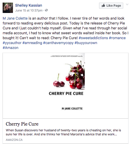 Also, full of gratitude and appreciation for my CaRWA (Calgary Chapter of the Romance Writers Association of America) peeps for their support in the lead-up to the publication of Cherry Pie, especially Jill Flanagan for answering my many stupid questions, Shelley Kassian for the most amazing social media share of launch day—ok, I totally have to show you a picture of it: