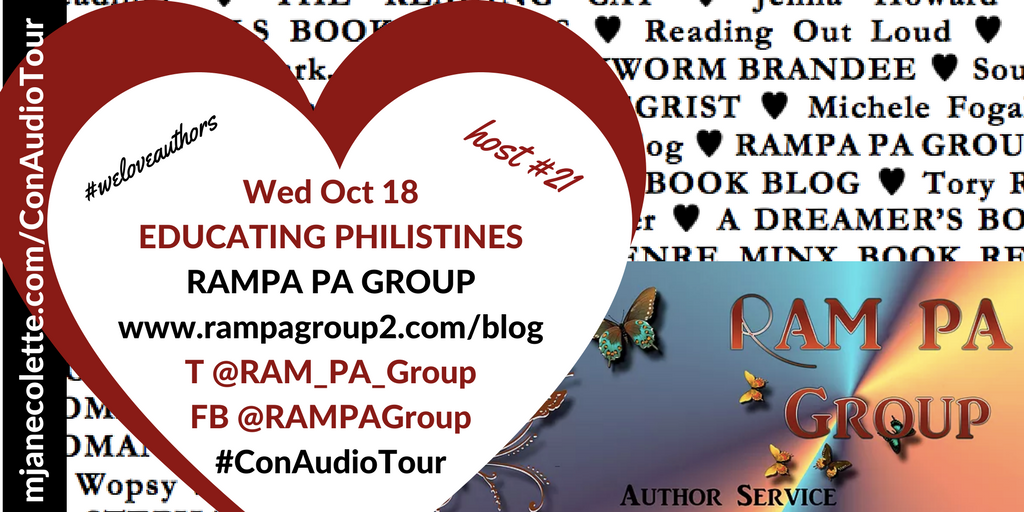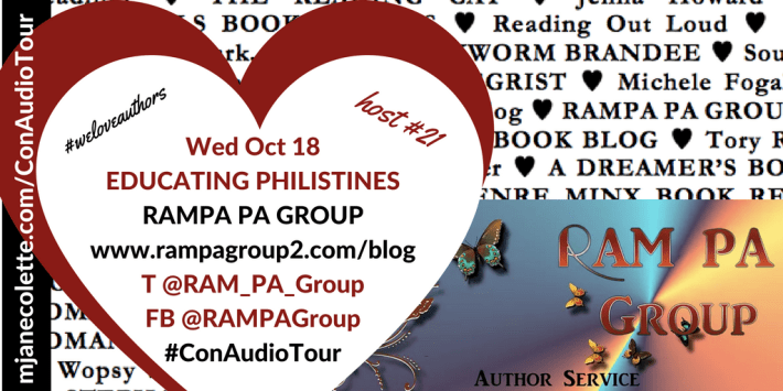 RAM PA works hard for their authors, and I am so very very grateful Maggie and Ronni accepted my invitations to be part of the Consequences Audio Tour. I hope their clients and their readers enjoy the word play and body language in the “Educating Philistines” chapter, because… mmm. Yes.