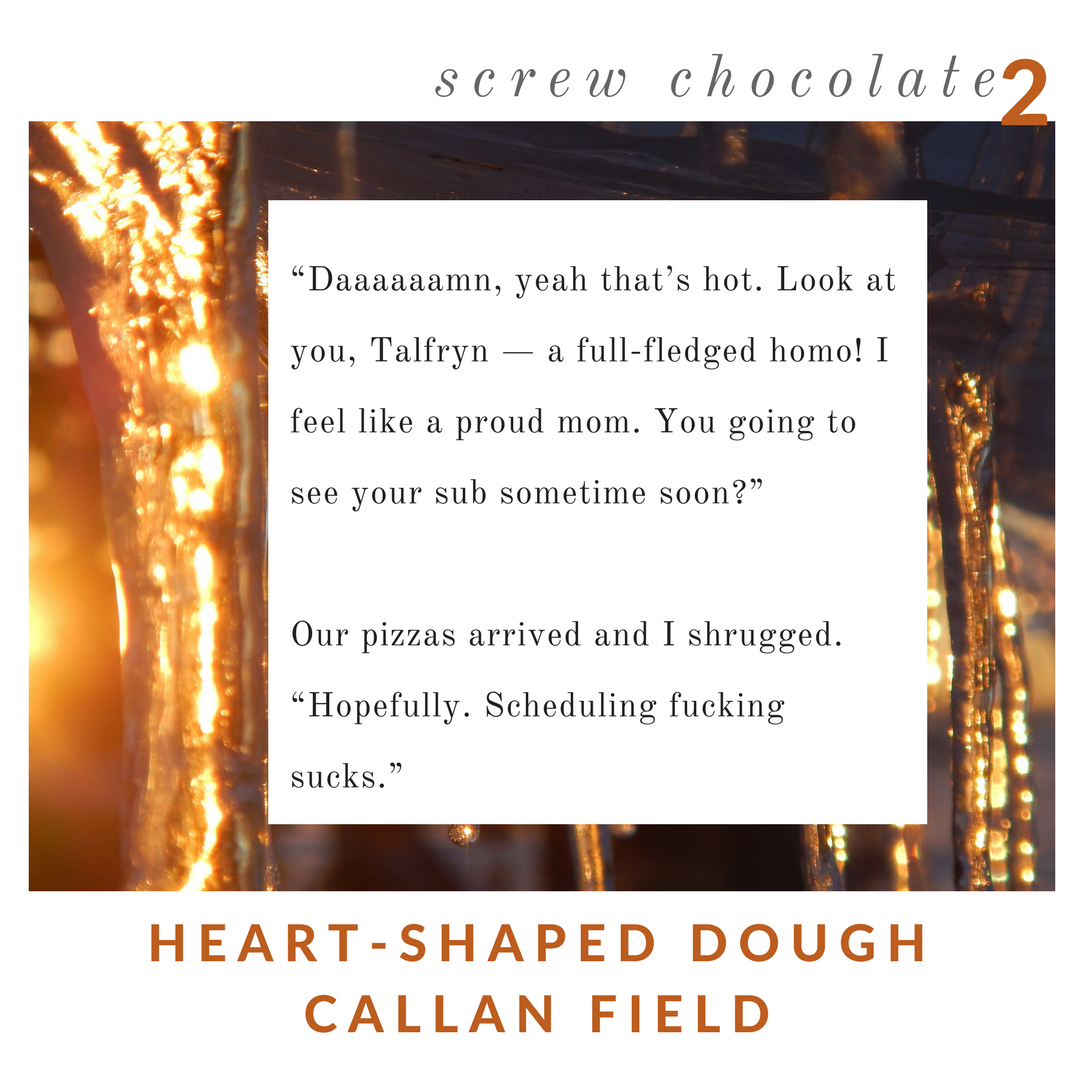 Nine days to go! The Screw Chocolate Countdown continues today a fiction piece that starts cranky, goes dirty, and might make you drool. Or flinch Maybe other things. By another new-to-YYC Queer Writers and probably to you author: