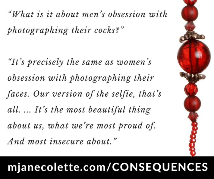 PS Dick pics really are a thing. I know. But here, Elizabeth’s lover in Consequences explains what that’s all about: