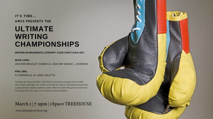 Celebrate the launch of the 2019 Writer in Residence Program with an MMA-style literary cage fight. Our readers will battle for literary supremacy by performing a poetry-fiction-creative nonfiction combo. Who will choke? Get tko’ed and who will emerge from the cage as the ultimate writing champion?