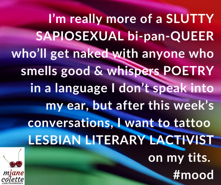 I’m really more of a slutty sapiosexual bi-pan-queer who’ll get naked with anyone who smells good & whispers poetry in a language I don’t speak into my ear, but after this week’s conversations, I want to tattoo Lesbi (1)