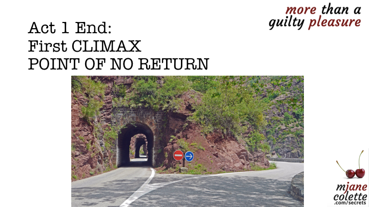 This is the point at which your heroine–and you–and your reader–are all irrecoverably committed to the plot. There is no turning back, no going home. You can only move forward… See you in class tonight for Act 2!