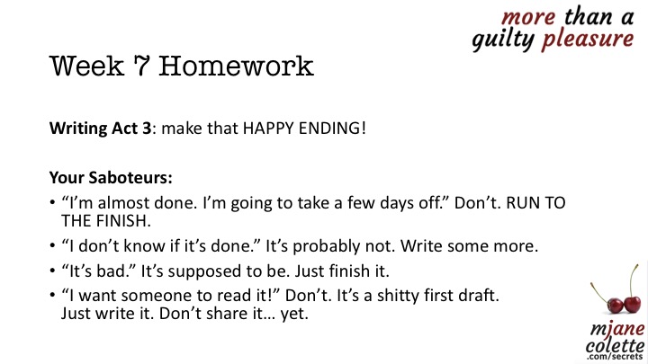Now, all of you are writing M-F romance this week, so remember, your ruling principle:
