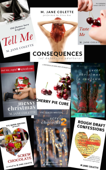 TEXT ME, CUPID CHERRY PIE CURE CONSEQUENCES TELL ME ROUGH DRAFT CONFESSIONS QUEER CHRISTMAS IN COWTOWN SCREW CHOCOLATE TELL ME… what are your books about? I write tragedy for people who like to laugh, comedy for the melancholy, and erotica for women