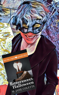 I want to play a game today. If you’ve read Bittersweet Halloween and you know what Will and Florence’s Halloween costumes are–email me at TellMe@mjanecolette.com with the answer for a chance to win an ARC of Text Me, Cupid. If
