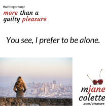 Today’s writing prompt: You see, I prefer to be alone. You know what to do. GO. 10 minutes, three pages, beginning to end–whatever’s your jam right now. How & Why To Use Writing Prompts More Than A Guilty Pleasure