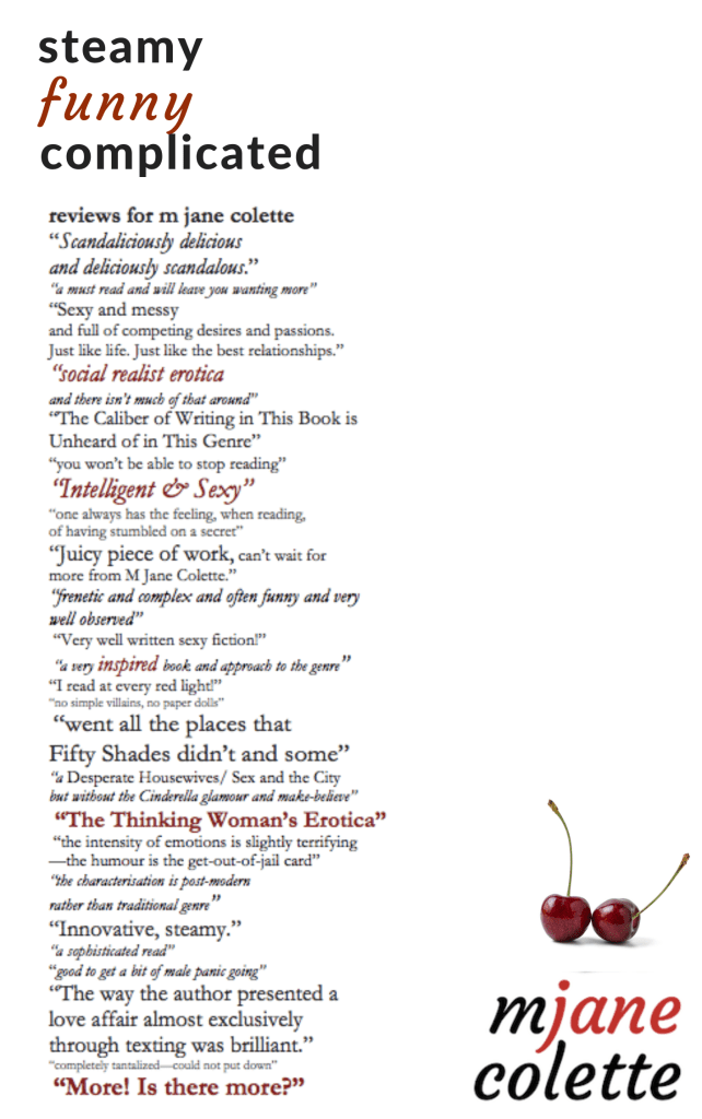 “Juicy piece of work, can’t wait for more from M Jane Colette.”