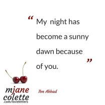 This is… foreshadowing. I hope. My night has become a sunny dawn because of you. Ibn Abbad Al-Mu’tamid ibn Abbad was, in the 11th-century, a caliph of Seville, and one of the most eminent Arabic-language poets of the time. For