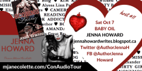Welcome to Stop 11 & Chapter 11 of the Consequences Audio Tour! If you’re in a hurry to listen to Chapter 11: BABY OIL, run to JENNA HOWARD’s Author Blog RIGHT NOW! You: Hey, what’s with today’s password-protected post? What