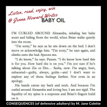Protected: BABY OIL // Chapter 11 of CONSEQUENCES (of defensive adultery) by M. Jane Colette