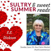 Welcome to the SULTRY & sweet SUMMER reads YYC author showcase, featuring S.L. DICKSON: S.L. DICKSON writes romantic suspense, mystery and contemporary romance. She focuses her stories in small towns and rural settings, although some of her characters are city dwellers.