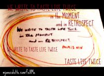 “We write to taste life twice: in the moment, and in retrospect.” Anaïs Nin HIM: Anaïs Nin. Again. ME: Yes. The diaries, this time. HIM: Obsess much? ME: A little. No orders this week. Too busy with Anaïs. mjc